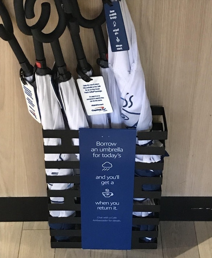 «Візьміть парасольку, щоб сховатися від дощу сьогодні. Поверніть його завтра, і ми почастуємо вас чашкою кави»