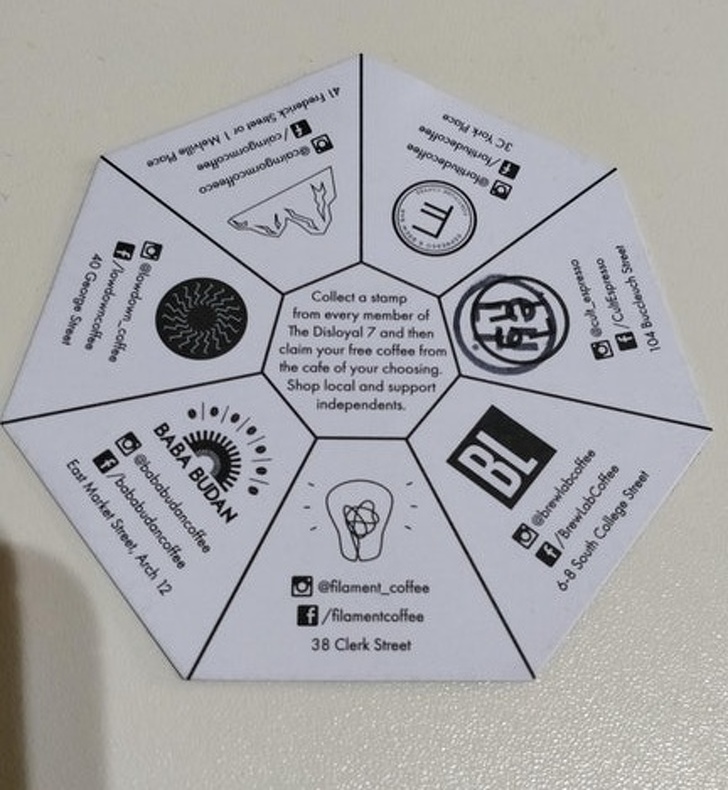 Карта лояльності навпаки, щоб поборотися з великими мережами кафе: зберіть штампи на карті в місцевих конкуруючих кав'ярнях і отримаєте безкоштовну каву в будь-якій з них
