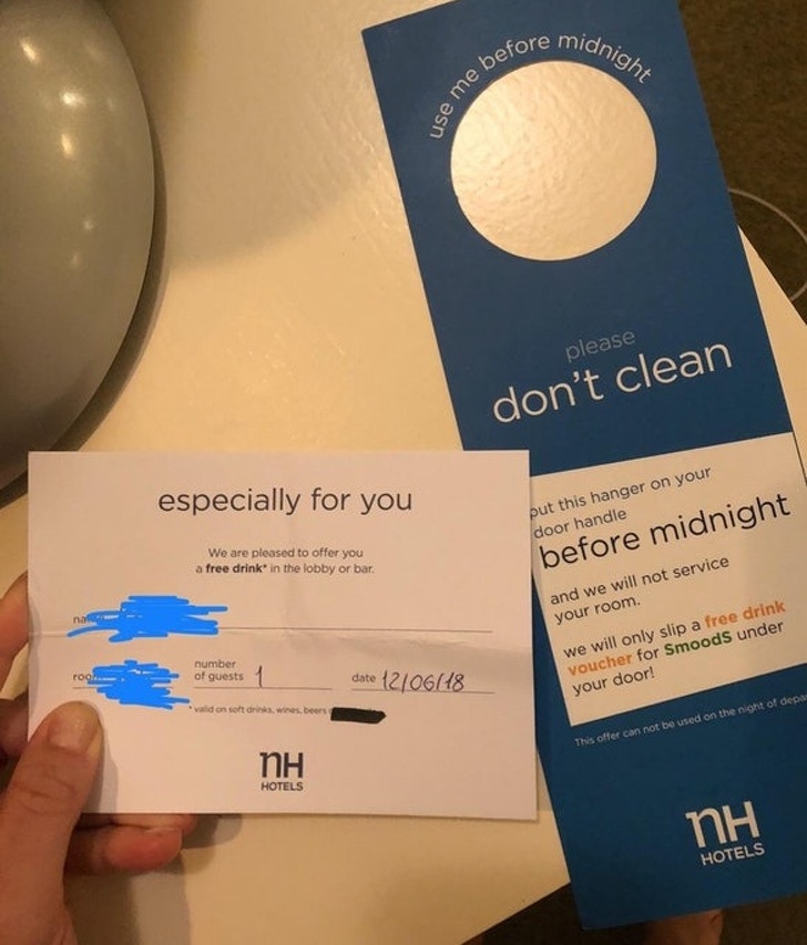 У цьому готелі дають безкоштовний ваучер на напій в барі, якщо ви відмовитеся від прибирання номера