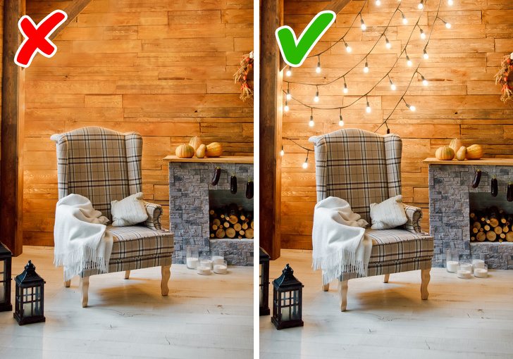 Неважливо, що до Нового року ще багато місяців. Знайдіть на антресолях новорічні гірлянди і прикрасьте ними спальню або шафа у вітальні. За допомогою такої простої хитрощі можна створити святкову атмосферу в квартирі за кілька хвилин. До того ж це додаткове освітлення додасть нових барв будинку і зробить приміщення яскравіше.