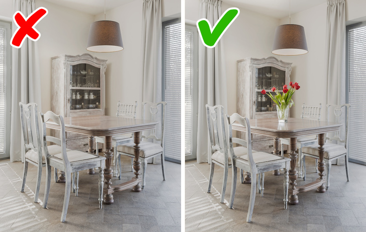 Часто традиційний інтер'єр з важкої меблями виглядає нуднувато. Перетворити його допоможе використання прозорих предметів інтер'єру та меблів. Такий контраст відразу ж пожвавить інтер'єр. До того ж прозора меблі або об'єкти візуально не займають простір. Необов'язково відразу ж купувати прозорі стільці або столі. Для початку спробуйте поставити на стіл велику прозору вазу з однією квіткою, і ваш інтер'єр відразу зміниться.