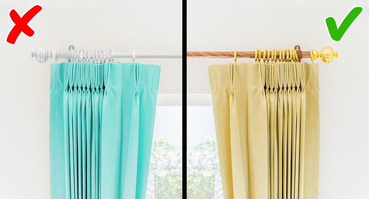 Не витрачайте кошти і час на купівлю і установку дешевих пластикових карнизів для штор, вони не надають ніякого затишку. Віддайте перевагу стельового або карнизу, зробленому з якісних матеріалів: дерева, металу. Вони й міцніше і довговічніше, і виглядають шляхетніше.