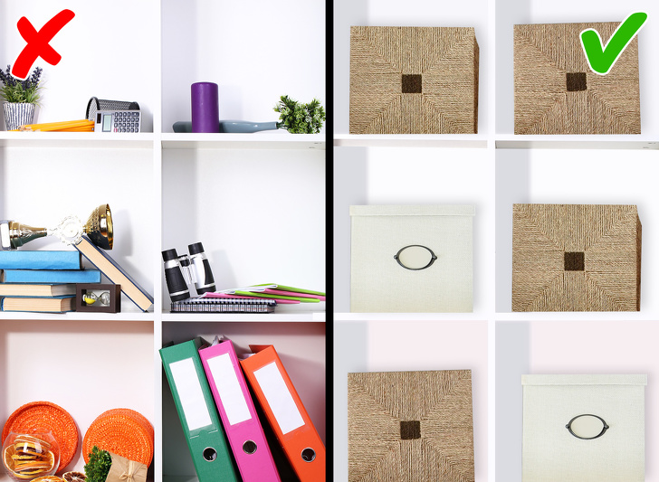 Не варто захаращувати полиці і антресолі речами, які вам більше нікуди подіти. Поставте стелажі з шухлядками і облаштуйте систему зберігання. Не розкладайте речі де доведеться. А з мотлохом розпрощайтеся.