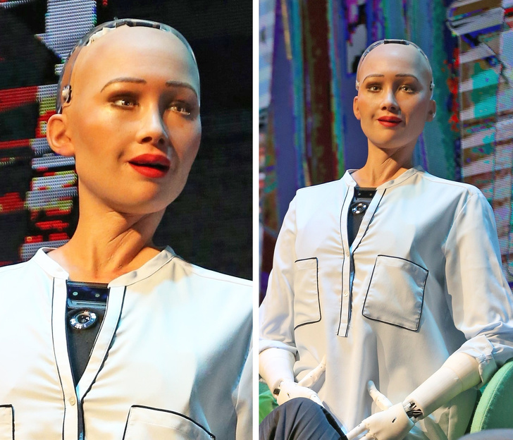 Говорячи про роботів, ми просто не могли обійти увагою Софію — робота у вигляді жінки від гонконгської компанії Hanson Robotics. Вона вміє розпізнавати обличчя, імітувати людські жести і вирази обличчя і підтримувати прості бесіди. З часом робот повинен стати розумнішим: Софія аналізує проведені розмови і на основі отриманої інформації покращує свої відповіді у майбутньому. Автор сподівається, що з часом робот зможе повноцінно взаємодіяти з людьми і стане їм хорошим помічником на великих заходах.