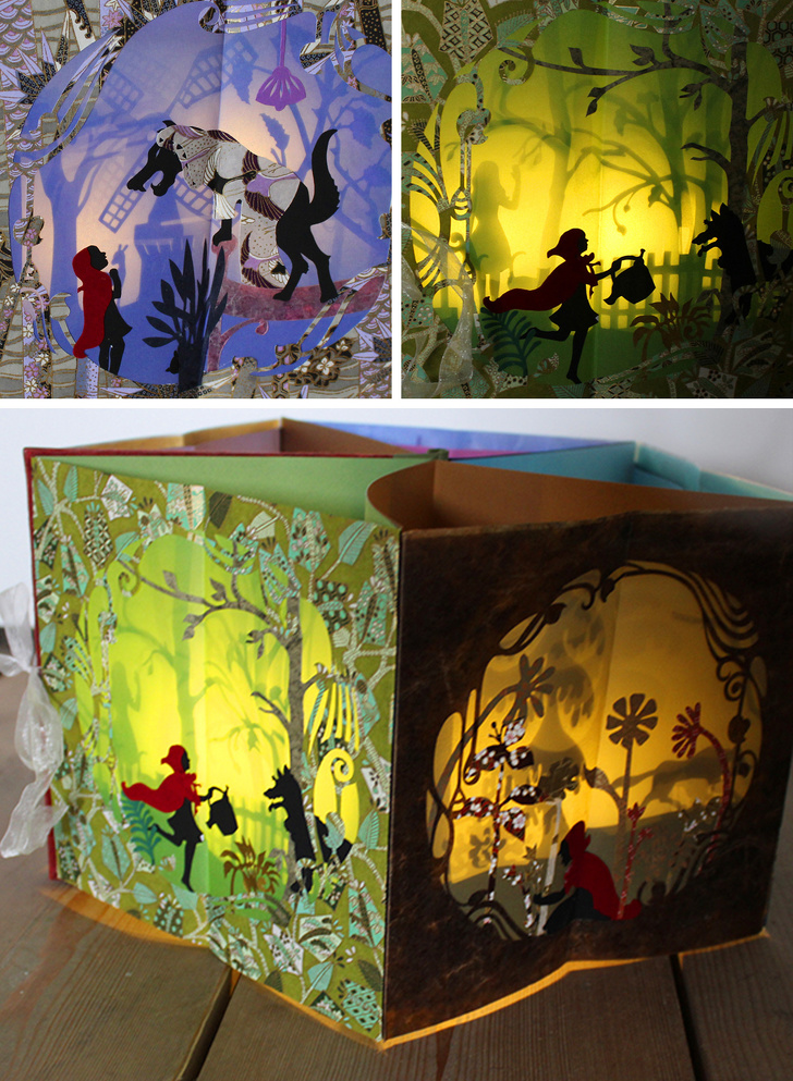 Німецький дизайнер Джулія Фройліх (Julia Froehlich) подарувала казок формат театру тіней: її книги так само розвертаються на 360 градусів, але складаються з об'ємних трикутних секцій. Кожна з них показує певну сцену з казки. Якщо поставити в центр утворюється фігури джерело світла, з'являються тіні і картинка оживає.