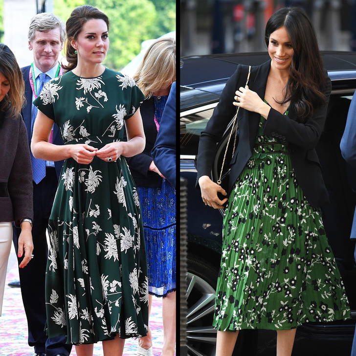 Більшість жінок яскраві кольори в гардеробі відлякують, але тільки не Кейт. Червоний — один з улюблених кольорів герцогині, який вона використовує як у повсякденних, так і в вечірніх вбраннях. Червоний колір за душі і Меган. Варто зазначити, що у дівчат абсолютно різні кольоротип, але правильно підібраний відтінок робить будь-який образ стильним.