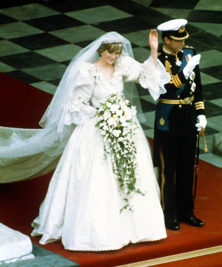 Весільну сукню принцеси Діани назавжди увійшло в історію як одне з найбільш знаменитих весільних суконь у світі. Сукня створили маловідомі дизайнери Девід і Елізабет Емануель. Всі плаття було вкрите мереживами, і на нього нашито 10 000 перлин, а вражаючим акцентом в образі був шлейф довжиною майже 8 метрів.