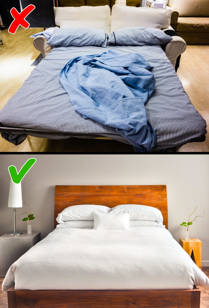 - Якщо зайде мова про купівлю нових меблів, краще віддати перевагу повноцінної ліжка з якісним матрацом. Крім зручності така меблі не так швидко ламається, як розсувні дивани.