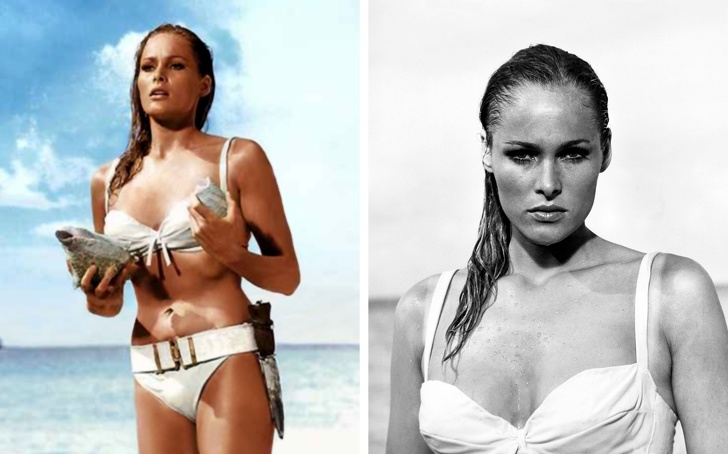 Урсула Андресс зіграла в першому фільмі бондіани «Доктор Ноу» і стала першою дівчиною Бонда. Урсула досі вважається однією з самих сексапільних дівчат Джеймса Бонда, а сцену її виходу на пляж з моря в білому бікіні порівнюють з картиною Боттічеллі «Народження Венери». Купальник з пряжкою і ножем на поясі став легендарним і був проданий на аукціоні в 2001 році за $ 59 755.