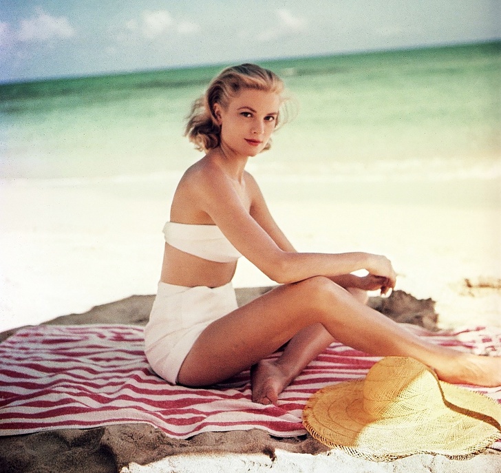 Витончена Грейс Келлі виглядає в білому купальному костюмі настільки ж стильно і благородно, як і в сукнях від кутюр. Цей знімок був зроблений на Ямайці в 1955 році Хауеллом Конантом, якого можна назвати персональним фотографом Грейс.