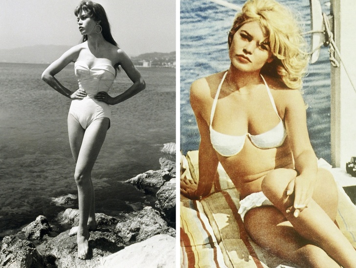 Бріжит Бардо вперше з'явилася в роздільному купальнику на екрані в 1952 році у фільмі «Маніна, дівчина в бікіні» і стала одним з головних популяризаторів цього виду одягу на пляжах пуританської Європи у 50-ті роки минулого століття. А білий купальний костюм, прикрашений мереживом і рюшами, в якому Бріжит з'явилася у фільмі «Приватне життя», підкорює з першого погляду (фото праворуч).
