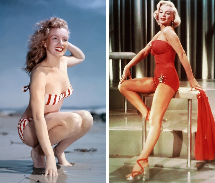 В архівах збереглося досить багато знімків різноманітних пляжних образів Мерилін. І на всіх вона виглядає чарівно. А образ актриси в слитном червоному купальнику з фільму «Як вийти заміж за мільйонера» є одним із найбільш ефектних і що запам'ятовуються появ в купальному костюмі в світовому кінематографі.