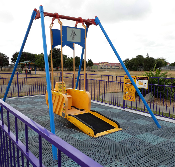 На цьому майданчику є гойдалки для людей з обмеженими можливостями