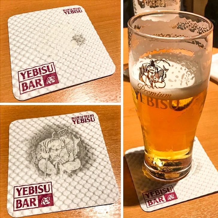 На цій підставці під пиво проявляється малюнок, як тільки вона збере достатньо вологи