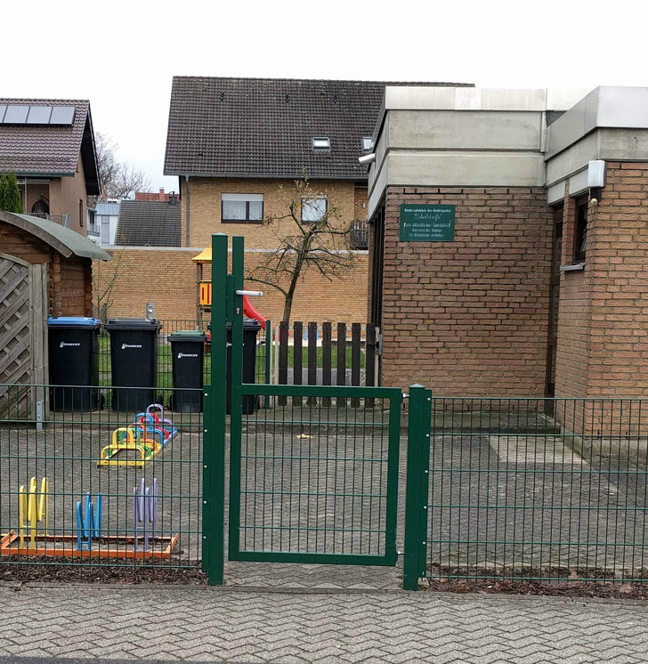 Замок на цій двері в садку розташований дуже високо, щоб діти не змогли відкрити його