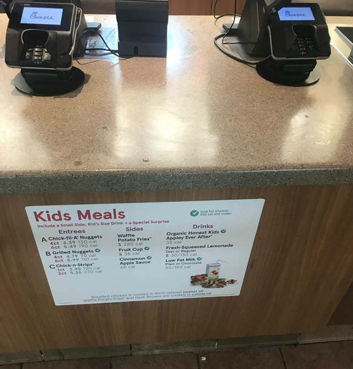 В цьому кафе дитяче меню розташовано на стійці на рівні очей дитини