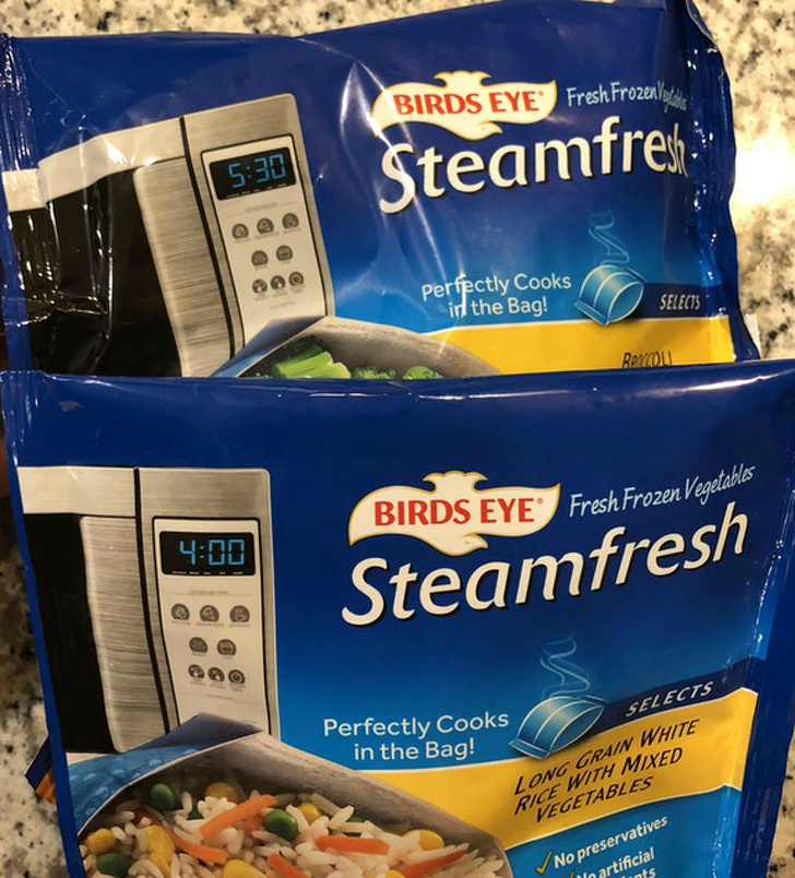 Мікрохвильова піч на упаковці показує, скільки потрібно готувати це блюдо