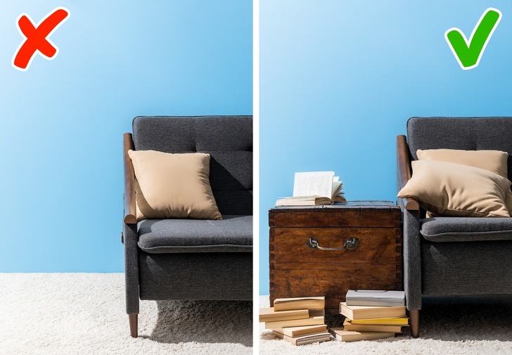 Об'єкти мистецтва візуально зроблять інтер'єр більш цікавим: в якості яскравого акценту вони відвернуть увагу від скромного ремонту. Не потрібно купувати відразу декілька картин або скульптур в одне приміщення — достатньо однієї картини, але якісної і вражаючого розміру. Як варіант — поставте на чільне місце гіпсову голову, яку можна купити в будь-якому художньому магазині. Скульптури ми підсвідомо сприймаємо як атрибут розкоші.