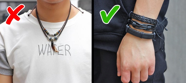 Ринок чоловічих прикрас зараз дуже різноманітний: браслети, кільця, намиста з натуральної шкіри і дорогоцінних металів. Вибирайте мінімалістичні прикраси, які доповнять ваш образ.