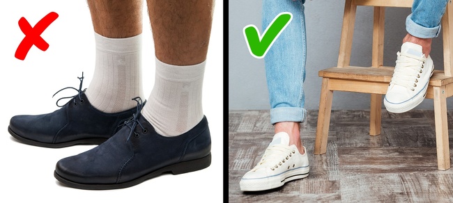 Особливо коли шкарпетки чорні, а білі кросівки (та ж ситуація з поєднанням чорних туфель і білих шкарпеток). Контраст світлих і темних тонів виглядає безглуздо і руйнує весь образ.