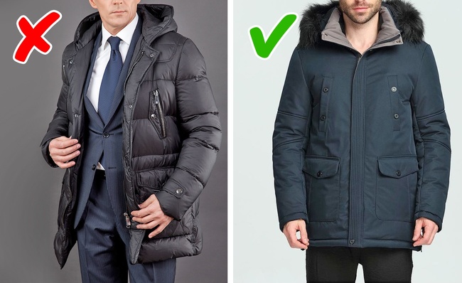 Поєднання класичних туфель, костюма і спортивного пуховика типу AutoJack виглядає безглуздо, особливо в сукупності з дипломатом або портфелем. Солідності такий образ не надає і справляє неоднозначне враження.