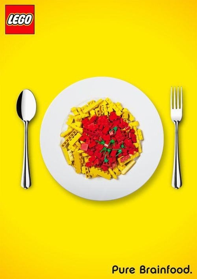 Завдяки креативному погляду на речі компанія Lego зуміла створити рекламний шедевр. Гасло «Справжня їжа для розуму» як не можна краще відображає необхідність розвитку творчих здібностей дитини нарівні з турботою про правильне харчування.