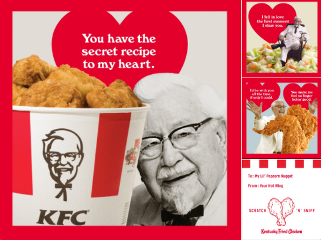 Зупинись і відчуй любов! Незвичайні листівки з ароматом смаженої курки створила KFC — так компанія відзначила День святого Валентина. У цьому році їх безкоштовно роздавали відвідувачам кафе в США. Цілком можливо, що творці реклами мали на увазі любов до їжі.