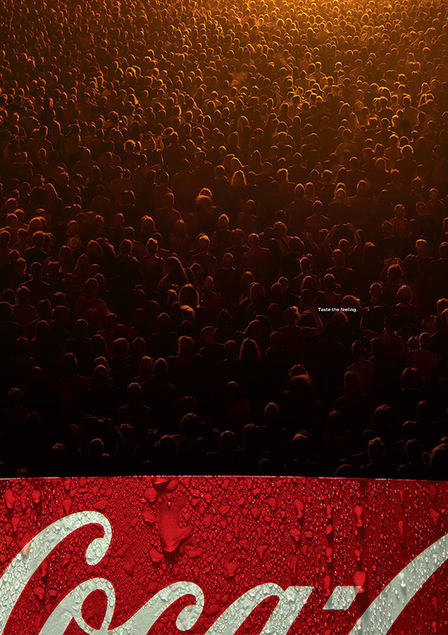 Створюючи нову рекламу для Близького Сходу, Coca-Cola використовувала зображення безлічі людей. Якщо придивитися, на принтах можна побачити людей, які схожі на бульбашки газованої води. Дизайнери порівняли почуття від споживання напою з тим, що фанати переживають на концерті улюбленої групи.
