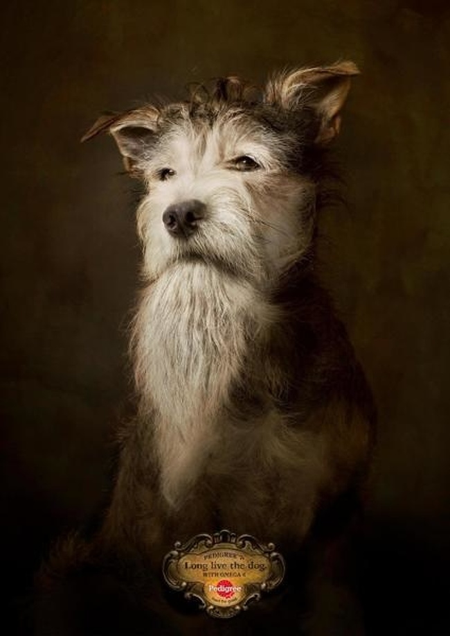 Ця реклама була створена в березні 2017 року агентством Colenso BBDO Auckland для Pedigree. Собаки зображені в кращих традиціях дворянських портретів. Виробник кормів нагадує, що правильний раціон — запорука довгого і щасливого життя домашніх улюбленців.