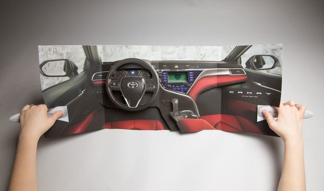 Автомобільний концерн Toyota створив рекламу, яка вміє вимірювати пульс читачів. У журналі був розміщений унікальний об'ємний макет. Він не тільки імітує відкривання дверей автомобіля, але і володіє відповідним звуком і запахом машини. В ручки паперового авто вбудовані датчики, а на приладовій панелі можна побачити свій пульс.
