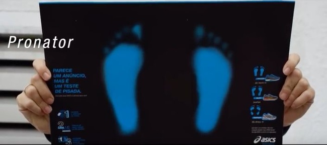 Реклама бігових кросівок Asics допомагає людям визначити свій тип стопи і вибрати в магазині відповідну взуття, щоб уникнути можливих травм через невідповідних кросівок. Розворот в журналі був виконаний за допомогою термохромных чорнила. Читач просто встає на рекламний макет, а папір змінює відтінок під впливом температури стоп. Отриманий відбиток порівнюється з трьома схемами. За цей проект бразильське агентство Neogama навіть отримав бронзову нагороду на фестивалі «Каннські леви» в номінації «Медіа».
