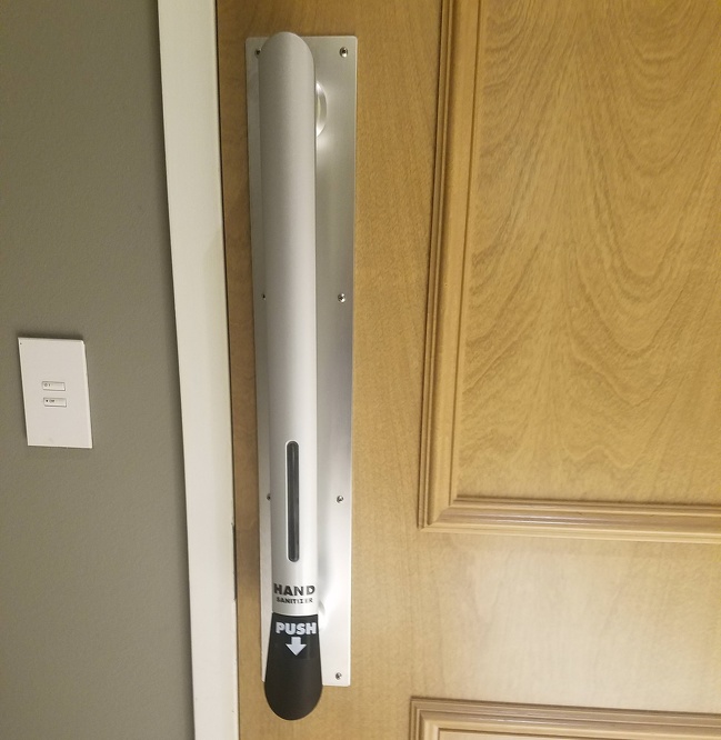 В цю дверну ручку вбудований диспенсер з дезинфикатором для рук