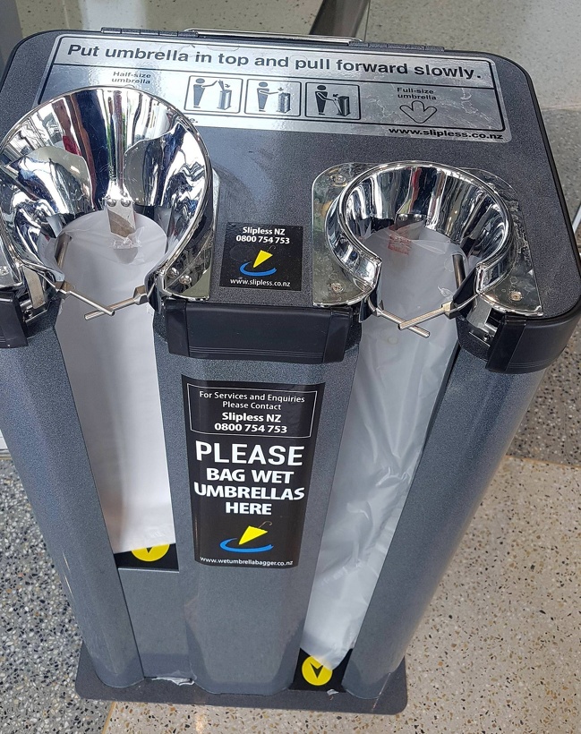 Ця машина в ТЦ автоматично запаковує мокрі парасольки в пластикові пакети