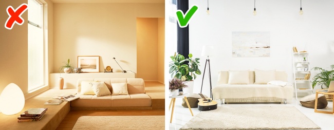 Варто залишити бежевий колір в минулому, так як його велика кількість обезличит будь-який інтер'єр, навіть якщо вибрати найбільш розкішні предмети. Якщо вам подобаються світлі кольори, то зробіть їх основними і доповніть яскравими деталями, які додадуть родзинку.