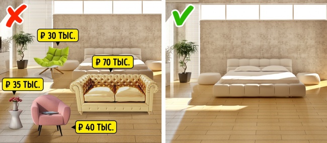 Може бути, комусь і подобаються наливні підлоги з зоровими ілюзіями і натяжні стелі з малюнком, фотошпалери, але варто пам'ятати, що це дуже здешевлює інтер'єр і привертає до себе зайву увагу. Краще вибрати класику, а щоб прикрасити простір, є безліч інших способів.
