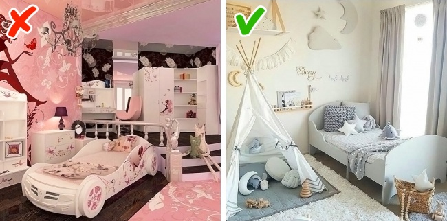 Дитячі меблі, може бути, і здається милою, але незабаром вона набридне і вам, і дитині. А найчастіше такі кімнати роблять батьки, які самі колись мріяли про щось подібне. Смаки дітей змінюються стрімко, тому краще вибрати що-небудь практичне, щоб не міняти меблі кожен раз, коли вона набридне або перестане підходити.