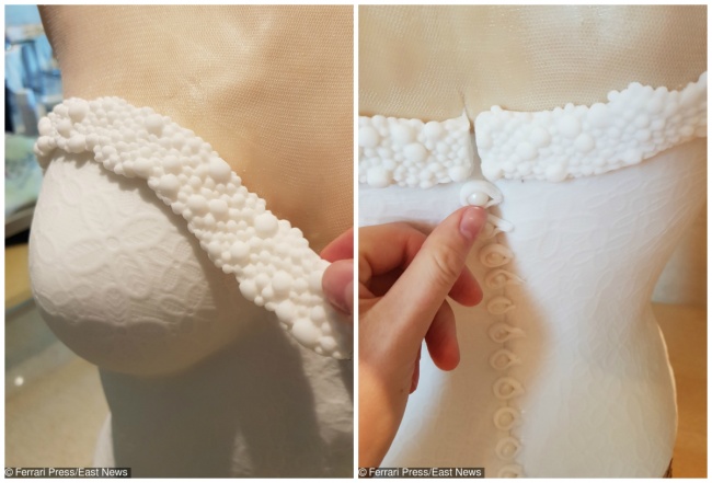 Кожна деталь була зроблена вручну, включаючи крихітні квіти і перлини.