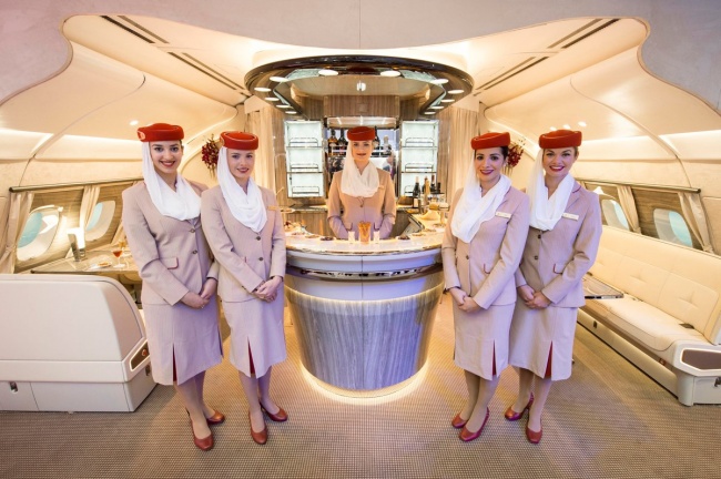 Авіакомпанія Emirates дуже серйозно ставиться до зовнішнього вигляду своїх співробітників, тому не дивно, що їх форма одна з найбільш пізнаваних. Стюардес навіть окремо навчають правильно носити головний убір і зав'язувати шарф.