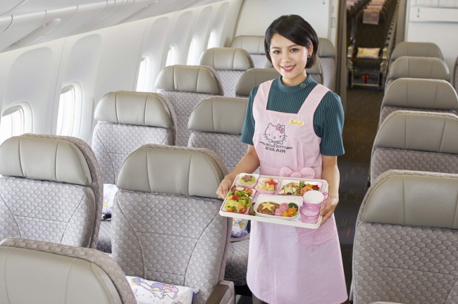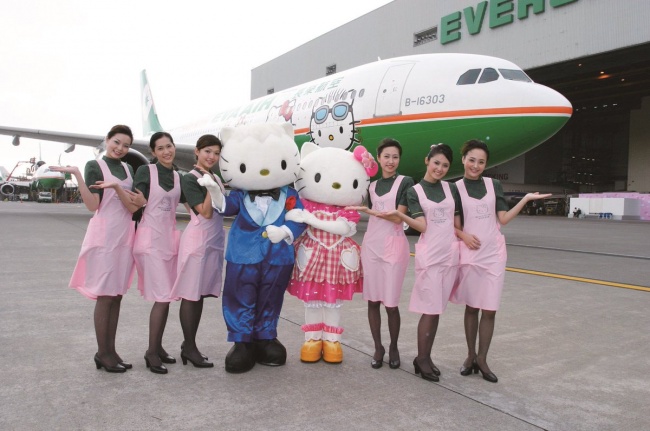 У 2005 році компанія EVA Air спільно з Sanrio запустила кілька лайнерів, прикрашених в тематиці Hello Kitty. Квитки, малюнки на літаках, подушках, їжу — все витримано в одному стилі. Як і одяг стюардес, звичайно.