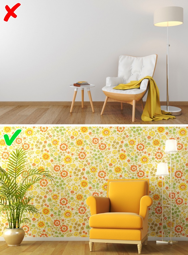 Дрібний малюнок приховує всі плями на поверхні, відволікаючи увагу на себе.