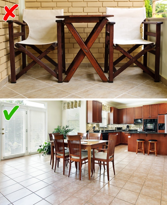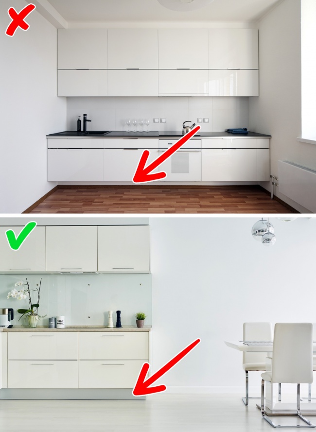 Навколо ніжок меблів скупчується пил. Щоб не мучитися, намагаючись дістатися до далекого запорошеного кута під шафою, варто вибирати меблі з цоколем, що закриває ніжки.