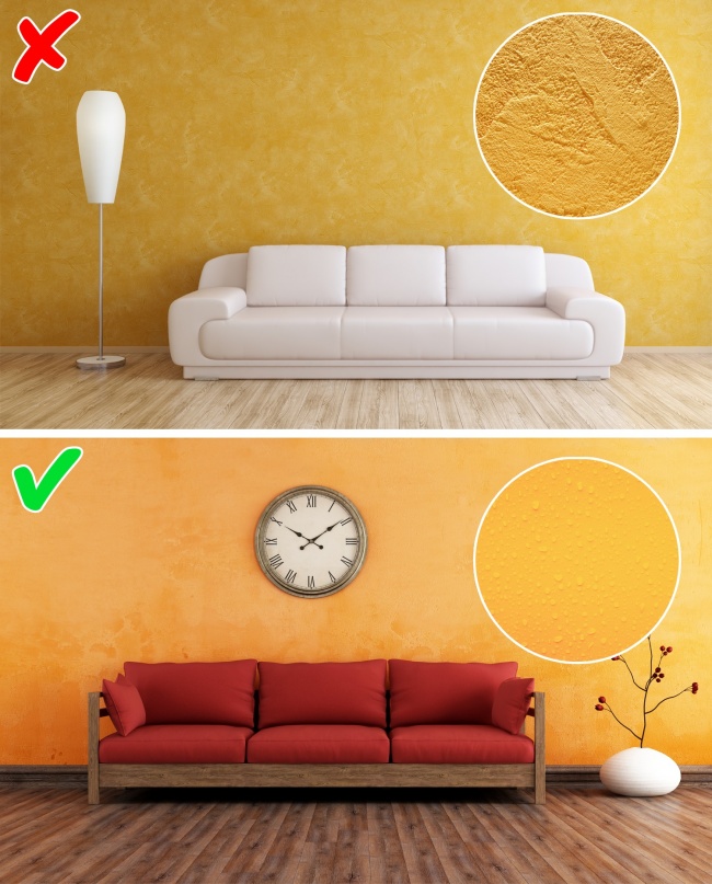 Віск у складі фарби створює на поверхні стіни захисний шар, який відштовхує забруднення. Якщо стіни забрудняться, їх можна буде просто протерти.