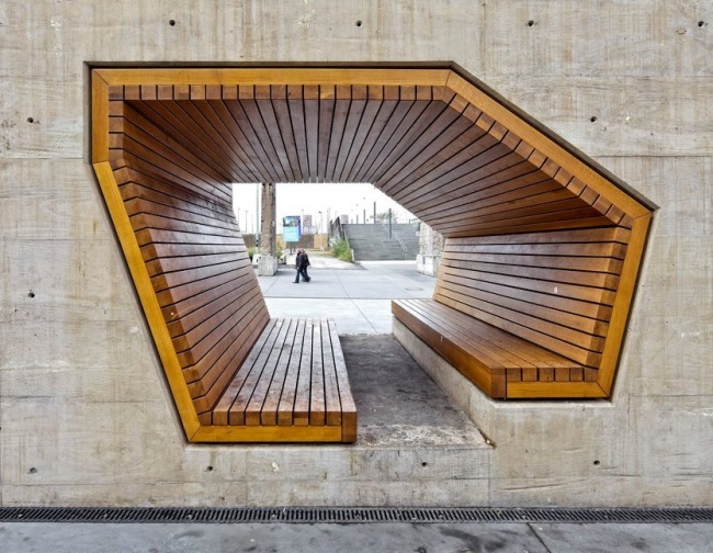 Лавочка, вбудована в стіну. Тут і дуже велика компанія поміститься
