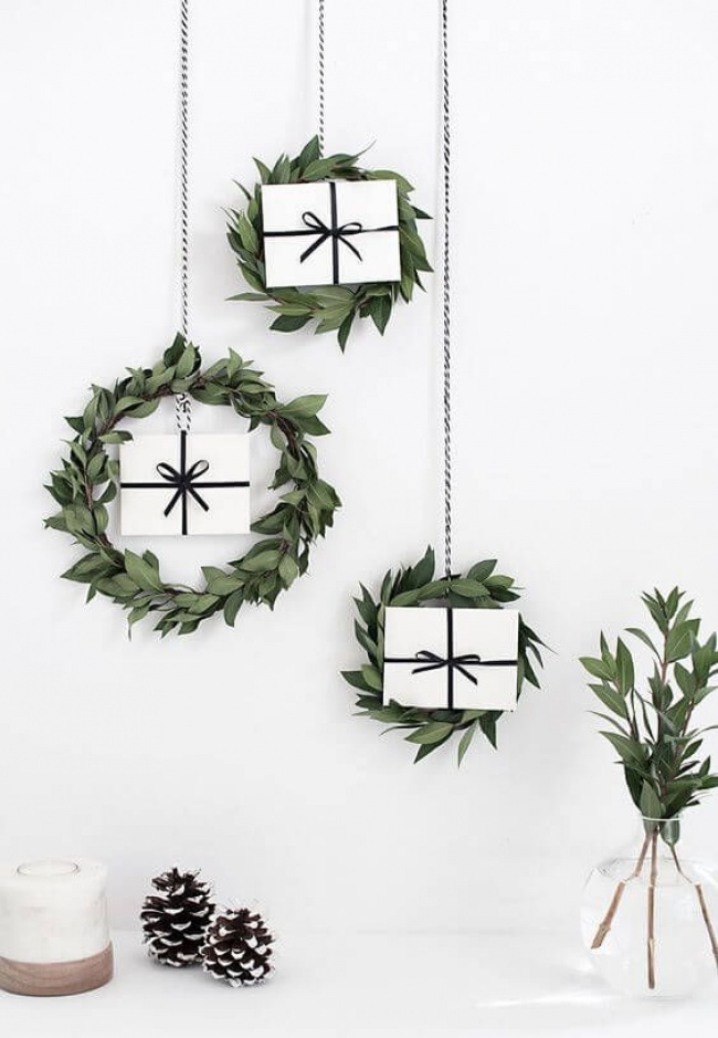 Подарунки можна не ховати під ялинку, а використовувати їх для такого незвичайного декору. Головне, щоб цікавість домочадців не прокинулося раніше часу.