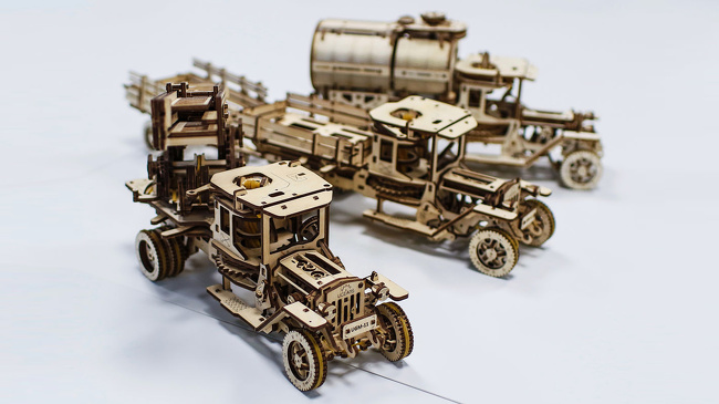 Що може бути краще подарунка, зробленого своїми руками? Незвичайний і екологічний подарунок, який ви будете з захопленням збирати вечорами всією родиною! Дерев'яні 3D-пазли від Ugears саме такі. З найдрібніших акуратних деталей ви зможете змайструвати скриньку, вантажівку або навіть локомотив, і всі ці моделі будуть оживати і рухатися без жодного мотора! Гарантуємо, в захваті залишаться всі діти від 5 до 95 років.