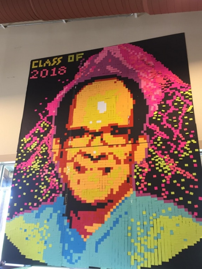«Кілька старшокласників нашої школи зробили портрет директора з паперу для нотаток»