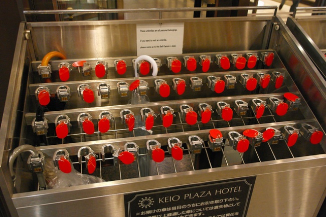 У ліфтах Осаки можна побачити попереджувальний значок парасольки, який спалахує, якщо на вулиці йде дощ