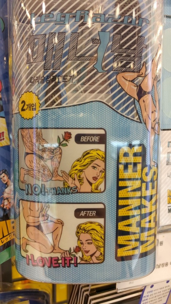 У місцевих магазинах можна знайти спеціальні верстати, реклама на яких закликає чоловіків голити ноги