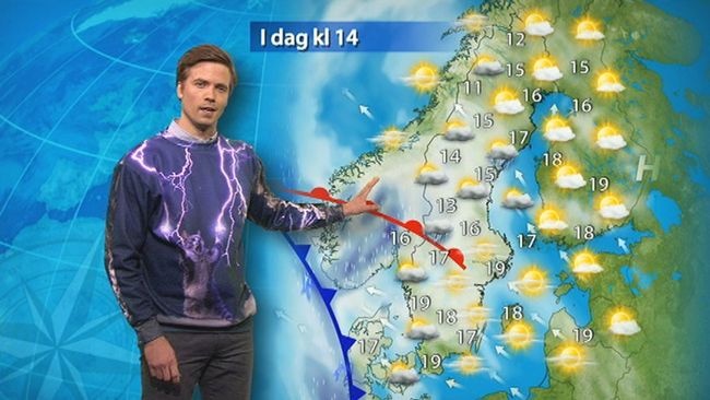 Ведучий «Прогнозу погоди» зі Швеції носить светр з котиком і блискавками