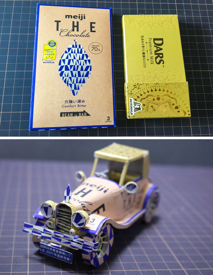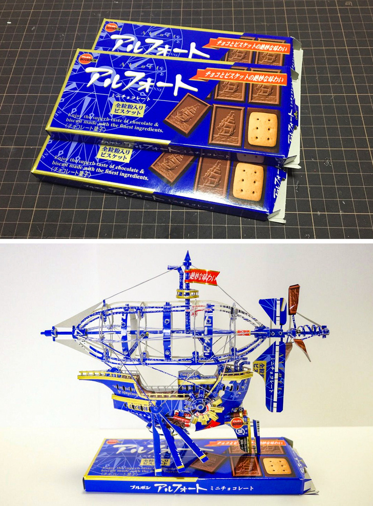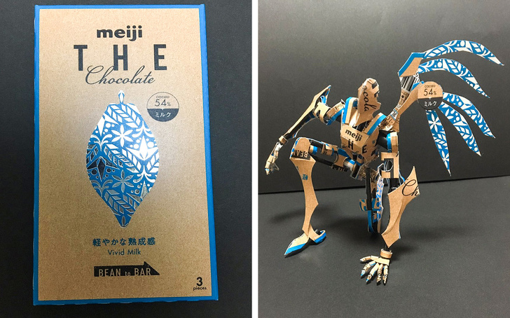 Харука Кавагуті навчається в Університеті дизайну в Кобе і захоплюється паперовим моделюванням. У 2018 році Харука почав створювати картонні фігурки: в хід пішли коробки з-під самих різних солодощів, банки чіпсів і навіть контейнер з серветками. І хоча все почалося з робота, створеного заради забави і практики, тепер в колекції вже більше десятка картонних скульптур з безліччю дрібних деталей, а Харука встиг виступити з розповіддю про своє хобі на місцевому телебаченні.